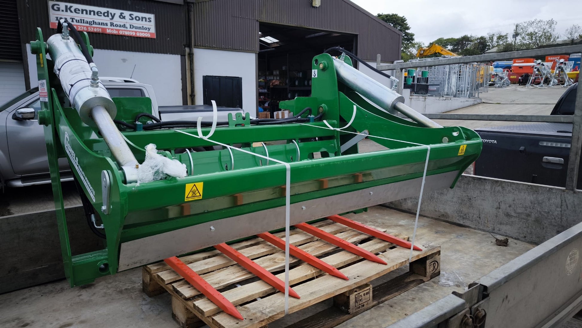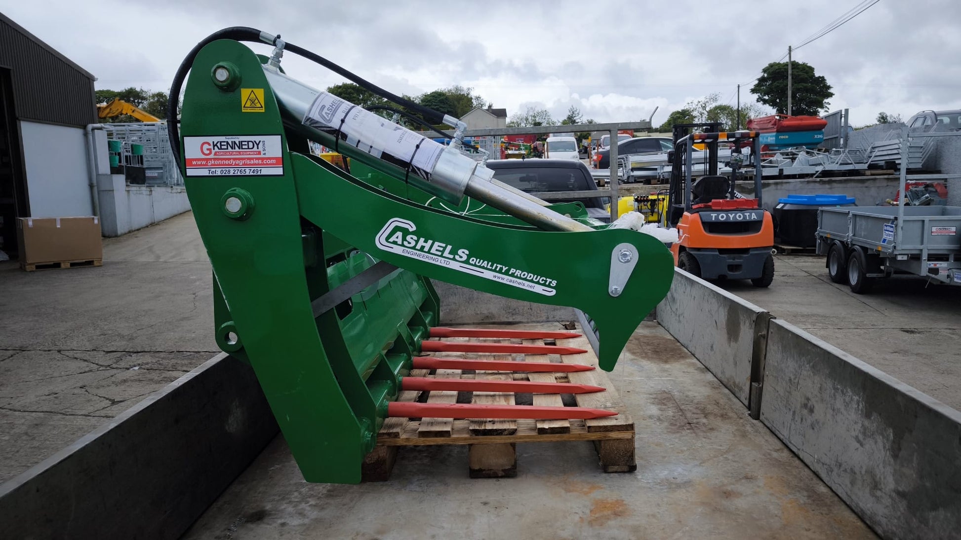 The very handy & timesaving patented Bale Cutter & Film Catcher from Cashels has been designed to increase the productivity of handling and feeding round baled silage to livestock when mounted on tractors and farm loaders. Mature silage bales vary in shape and density depending on their geographic location and climate conditions. Therefore, the unique shape of our Bale Cutter & Film Catcher ensures that the unit performs its design function of transporting, cutting in half and catching the film and net every time, regardless of the bale shape or density.
